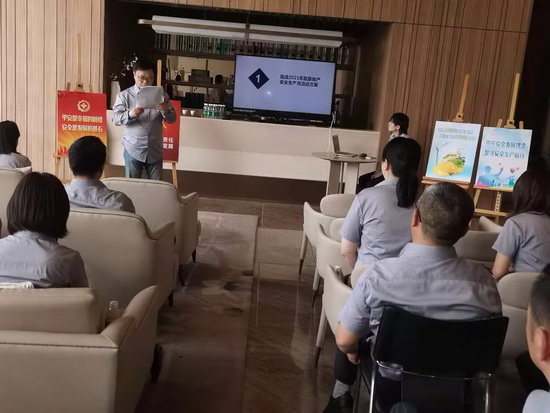 為(wèi)貫徹落實市(shì)安委辦《關于開(kāi)展2021年(nián)全市(shì)"安全生(shēng)産月(yuè)活動的(de)通(tōng)知(zhī)》文(wén")件(jiàn)精神要(yào)求,強化(huà)"人(rén)民(mín)至上(shàng)、生(shēng)命至上(shàng)"理(lǐ)念, 2021年(nián)5月(yuè↕)28日(rì)下(xià)午,緻豪地(dì)産在萬濠禧園售樓處大(dà)廳舉辦了(le)以"落實安全責任,推動安全發展"為(wèi)主題的(de)安全生(shēng)産月(yuè)啓動會(huì)。