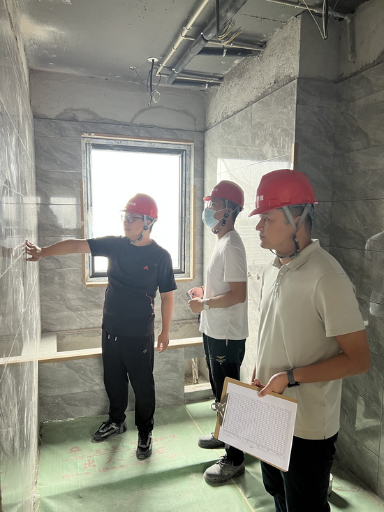 海(hǎi)門(mén)嘉盛苑項目主體(tǐ)結構封頂,裝修工(gōng)作(zuò)全面展開(kāi),工(gōng•)程師(shī)們不(bù)懼室內(nèi)超35℃高(gāo)溫,每天對(duì)各樓棟及整個(gè)項目現(xiàn)場(chǎng)展開(kāi)巡查工(gōnβg)作(zuò),高(gāo)标準、嚴要(yào)求對(duì)現(xiàn)場(chǎng)材料使用(yòng)、精裝與土(tǔ)建移交φ數(shù)據、吊頂工(gōng)程、鋪貼工(gōng)程尺寸等進行(xíng)實測實量複核檢查,抓好(hǎo<)每一(yī)道(dào)工(gōng)序,力求精益求精,為(wèi)後續大(dà)批量精裝施工(gōng)提供高(gāo)标準樣闆指引。
